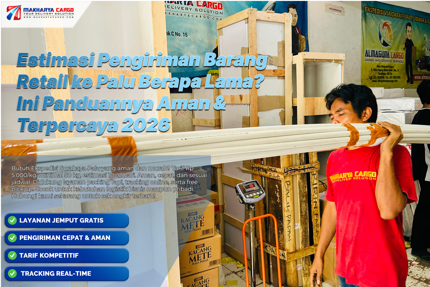 Jika Anda masih mempertimbangkan estimasi pengiriman barang retail ke Palu, maka penggunaan cargo bisa menjadi solusi terbaik. Dengan biaya lebih hemat, kapasitas besar, serta sistem distribusi yang terorganisir, pengiriman retail dapat berjalan lebih efisien, aman, dan sesuai dengan kebutuhan bisnis Anda.